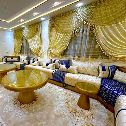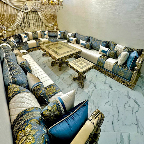 Le salon "Bleu Marocaine" allie l’élégance du style traditionnel marocain à une touche contemporaine, avec des tons bleus apaisants. Ses finitions artisanales et ses motifs raffinés reflètent l’authenticité du patrimoine marocain. Idéal pour créer une ambiance chaleureuse et sophistiquée dans votre salon.